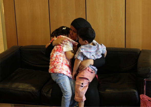 Η συγκλονιστική επανένωση της οικογένειας πραγματοποιήθηκε σήμερα το πρωί στις 10.45 στο Αεροδρόμιο Μακεδονία παρουσία εκπροσώπου της Παλαιστινικής Πρεσβείας, ψυχολόγου και κοινωνικού λειτουργού του Οργανισμού «Το Χαμόγελο του Παιδιού». Η μητέρα και ο μικρός αδερφός ταξίδεψαν από τη Δαμασκό στη Θεσσαλονίκη.